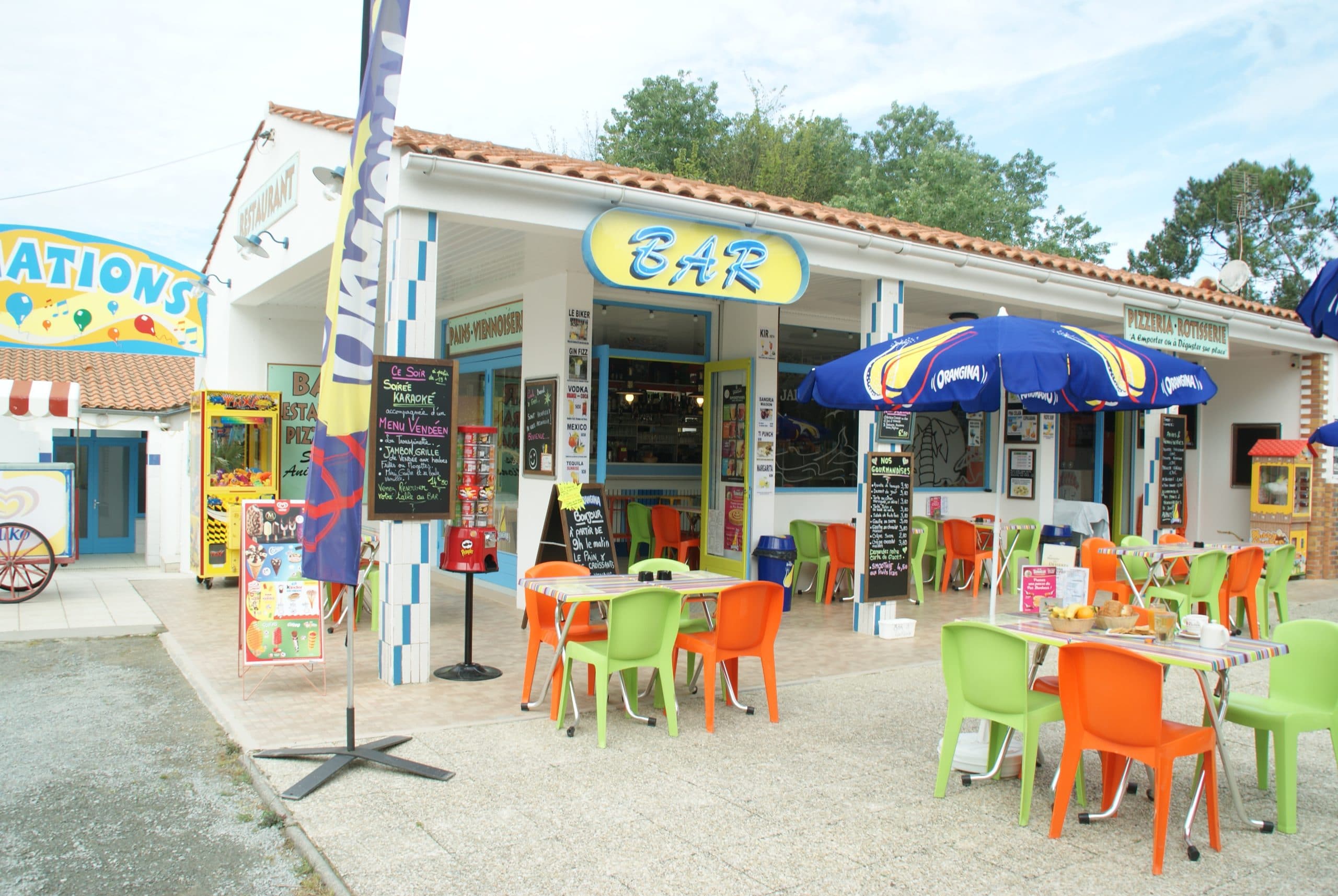 During your stay at the campsite in St Jean de Monts, you will find the bar with its outdoor terrace. Ideal for small and big hungers or to enjoy a convivial moment with family or friends. In addition, we offer catering with its grill for meals to be enjoyed on site or to take away.